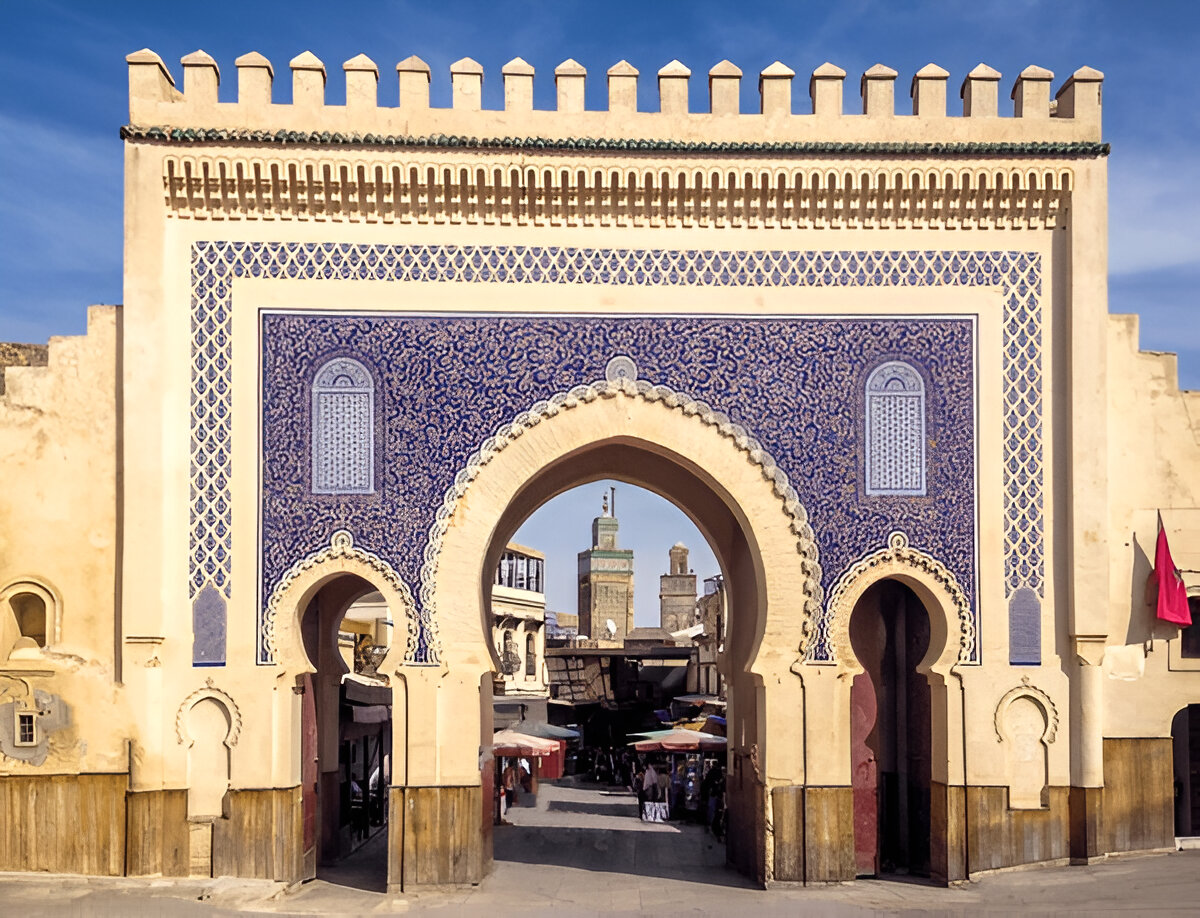 Begin your journey in the spiritual heart of Morocco. Explore Fes’s ancient medina, a labyrinth of history and culture. Visit the Chouara Tannery, watch traditional leather-making in action, and admire the elegant Bou Inania Madrasa, a masterpiece of Marinid architecture.