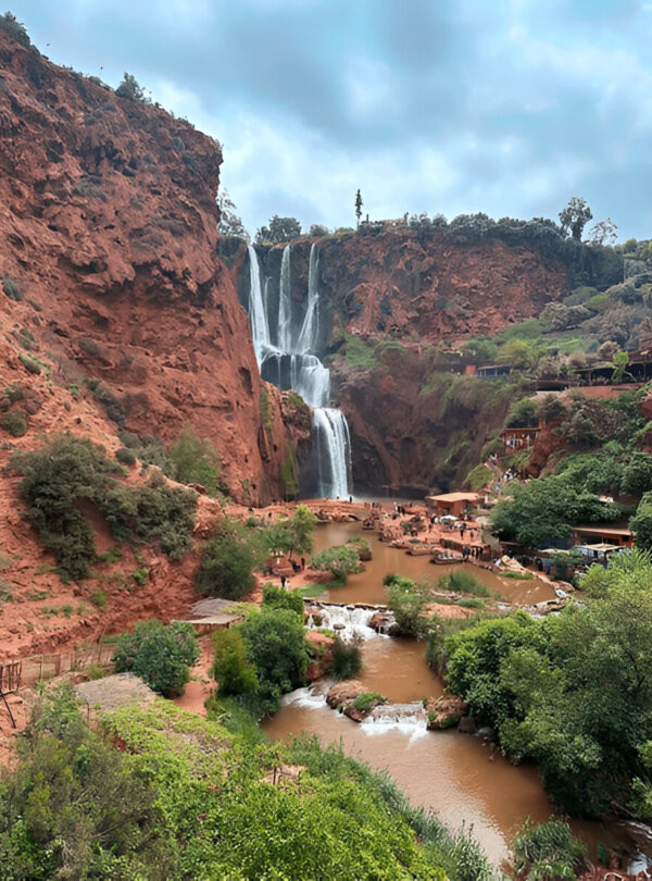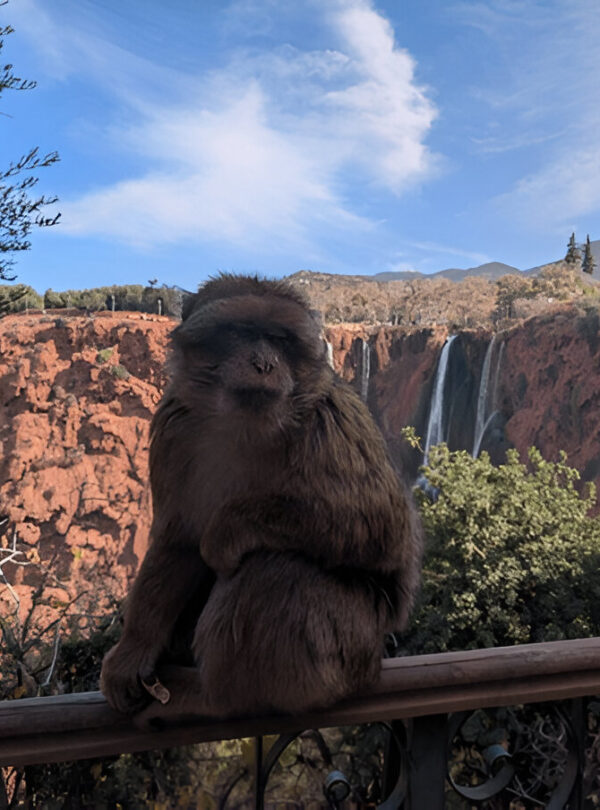 - Morning Departure: Begin your day with an early pickup (around 8:00 AM) from your hotel or a central meeting point in an air-conditioned vehicle. Scenic Drive: Travel through traditional Berber villages, olive groves, and the rolling foothills of the Middle Atlas Mountains. Arrival at Ouzoud: Reach the spectacular 110-meter (360 feet) waterfalls by late morning. Surrounded by lush greenery, the falls are ideal for photos and quiet reflection. Optional Guided Hike: Explore the area on foot with a local guide. Follow nature trails, cross rustic bridges, and descend to the base of the falls. Enjoy a short traditional boat ride that takes you near the base of the cascade. Wildlife Encounters: Spot Barbary macaques, the friendly native monkeys often seen in the treetops or along the trails. Lunch with a View: Dine at a local restaurant overlooking the waterfalls, where you can savor traditional Moroccan cuisine. Relaxation Time: After lunch, unwind by the natural pools, take more photos, or simply soak in the peaceful atmosphere.Morning Departure: Begin your day with an early pickup (around 8:00 AM) from your hotel or a central meeting point in an air-conditioned vehicle. Scenic Drive: Travel through traditional Berber villages, olive groves, and the rolling foothills of the Middle Atlas Mountains. Arrival at Ouzoud: Reach the spectacular 110-meter (360 feet) waterfalls by late morning. Surrounded by lush greenery, the falls are ideal for photos and quiet reflection. Optional Guided Hike: Explore the area on foot with a local guide. Follow nature trails, cross rustic bridges, and descend to the base of the falls. Enjoy a short traditional boat ride that takes you near the base of the cascade. Wildlife Encounters: Spot Barbary macaques, the friendly native monkeys often seen in the treetops or along the trails. Lunch with a View: Dine at a local restaurant overlooking the waterfalls, where you can savor traditional Moroccan cuisine. Relaxation Time: After lunch, unwind by the natural pools, take more photos, or simply soak in the peaceful atmosphere.
